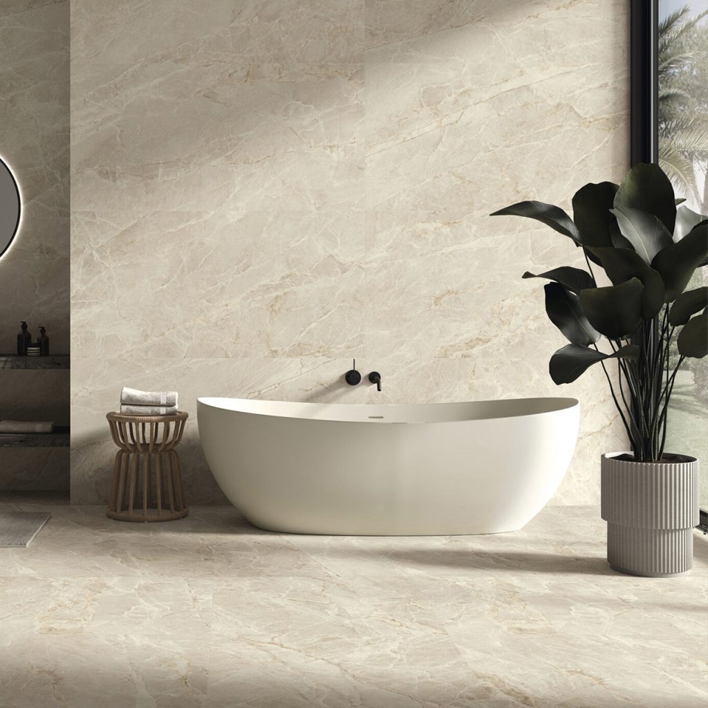 ماجيستيك كريم من شركة عالم البنيان بورسلين اسباني باللون الكريمي وبشكل رخامي فخم مناسب للحمامات والمطابخ والارضيات يتوفر بجميع المقاسات (80*80 , 160*80 , 280*120) لامع ومطفي ليناسب جميع الأذواق
