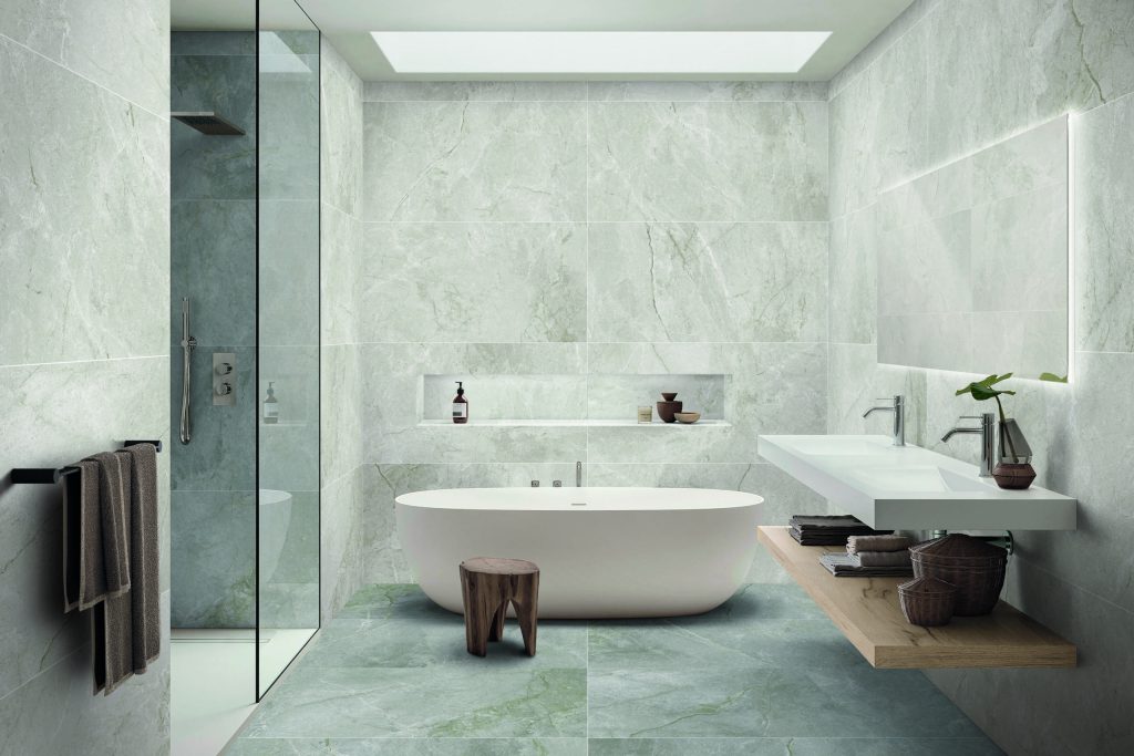 من شركة عالم البنيان بورسلين اسباني بشكل رخامي وبلونين بيج و رمادي يتوفر لامع ومطفي وبمقاس 60*120