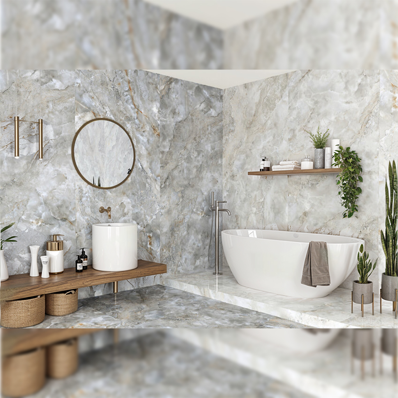 اورا سكاي من شركة عالكم البنيان بورسلين اسباني متوفر باللامع والمطفي وبشكل رخامي فخم وبلون رمادي مدمج مع السحابي متوفرة بجميع المقاسات (280*120 , 160*80 , 80*80)