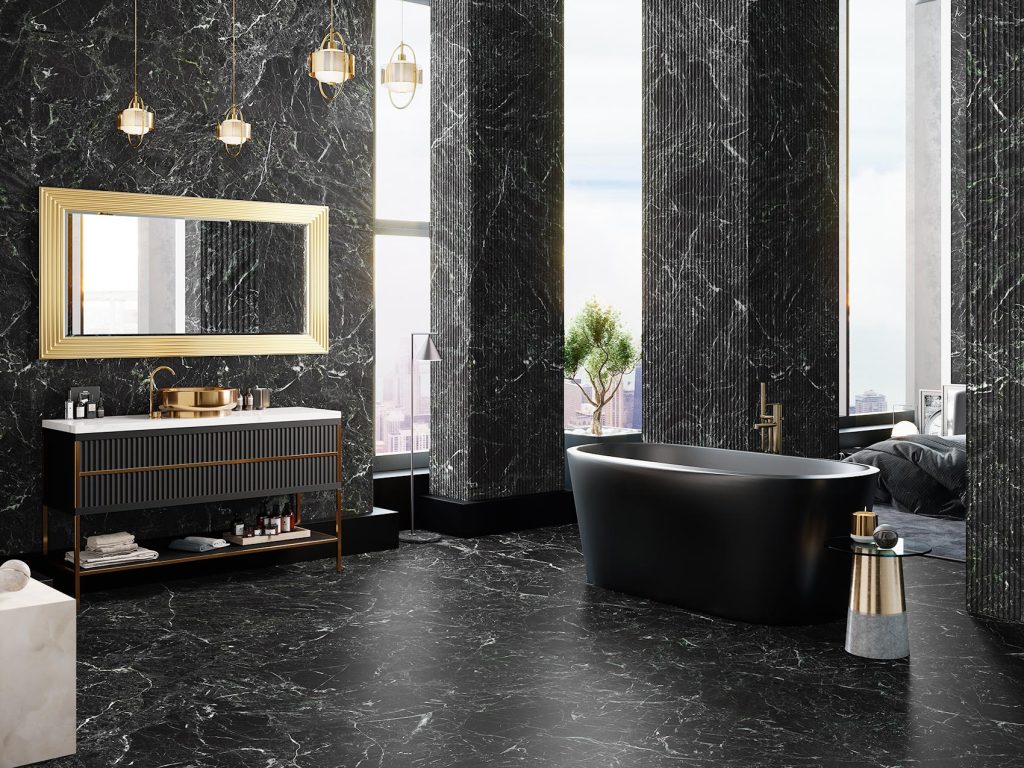 من شركة عالم البنيان سلاب ايطالي لامع بشكل رخامي باللون الأسود يعطي لمسة من الفخامة جميلة جداً يتوفر بمقاس 300*120