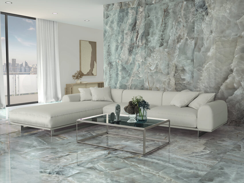 بلاط بورسلان بتشطيب لامع يعكس المظهر الفخم للحجر والرخام مع لمسة عصرية، متوفر بعدة ألوان تشمل (أخضر)jade ، Nacre (عاجي/أبيض)، Rose (وردي) ليمنحك خيارات تناسب مختلف التصاميم، ويُستخدم في الأرضيات والجدران الداخلية والخارجية ويتميز بالأداء القوي وسهولة الصيانة.